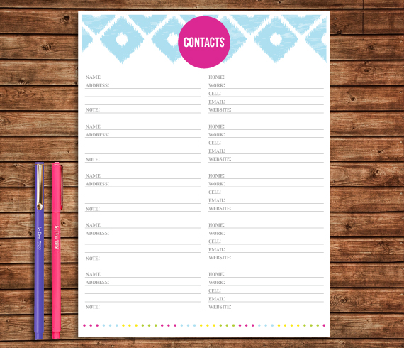 Keep all your current important contacts handy. This page works great when you need to keep kids school info numbers handy for me.