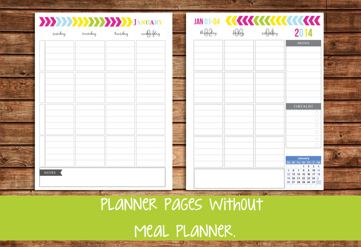 As I said before, you have the option to get your planner pages with, or without a meal plan.