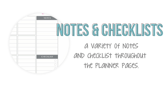Plenty of Notes and Checklist sections will be found in this years Everyday Planner Printables. So dump all those thoughts fogging your brain at night that don’t let you sleep, and wake up refreshed knowing you will have not missed a thing.