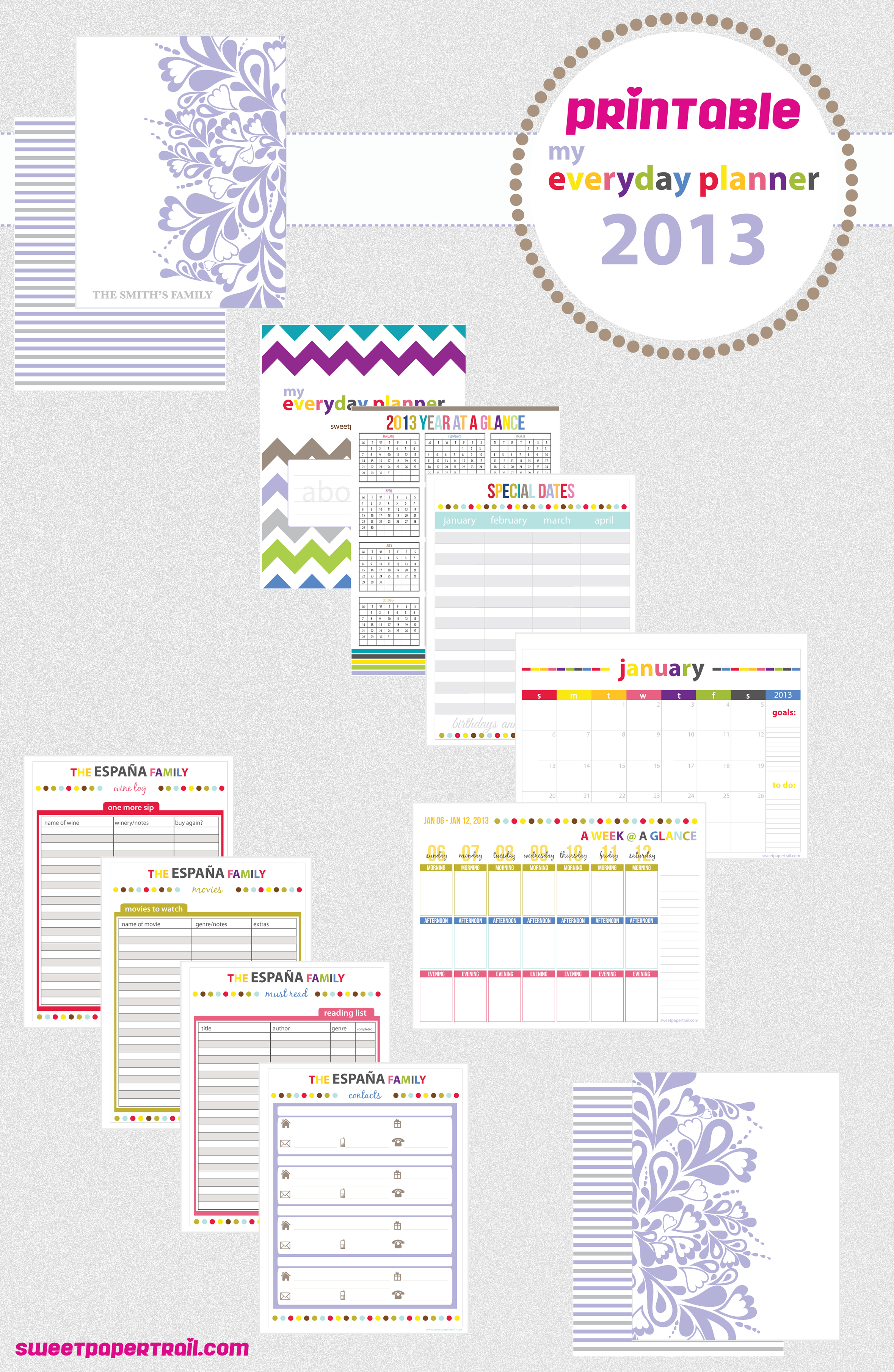 What’s included in the printable 2013 planner?